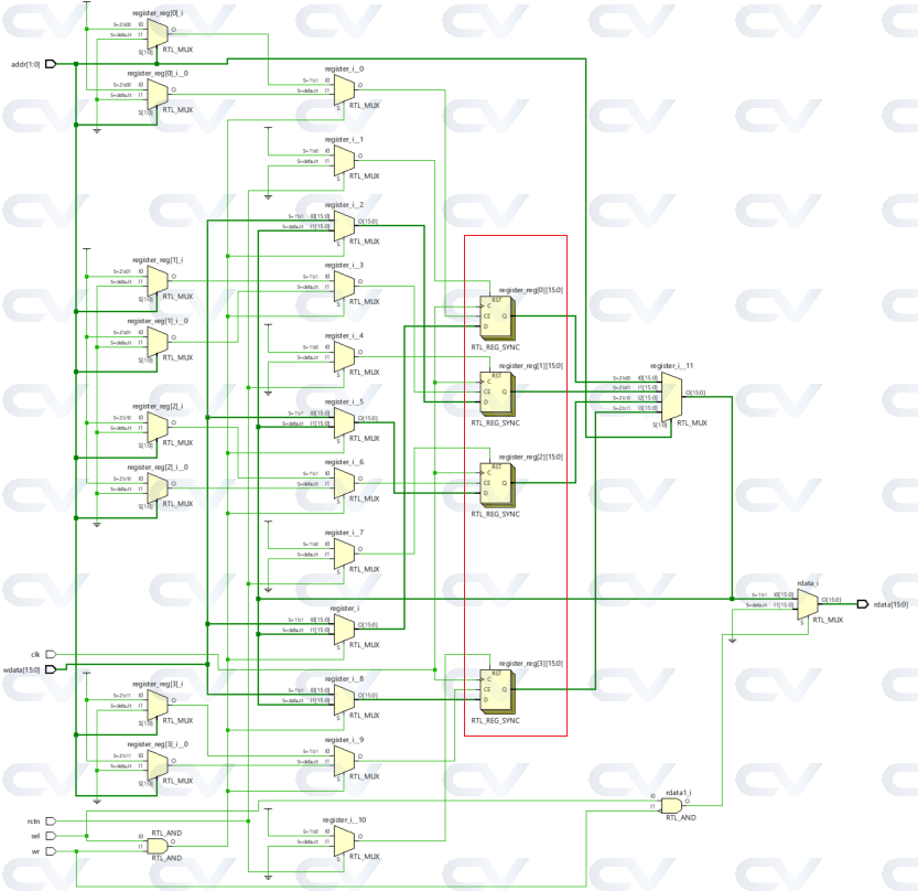 It can be seen in the hardware schematic that each index of the array is a 16-bit flop and the input address is used to access a particular set of flops.