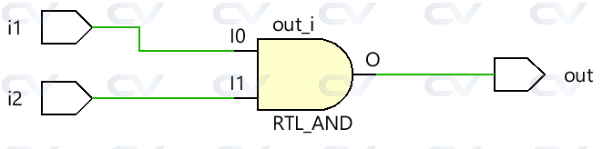 In the following example, a net called out is driven continuously by an expression of signals. i1 and i2 with the logical AND & form the expression.
