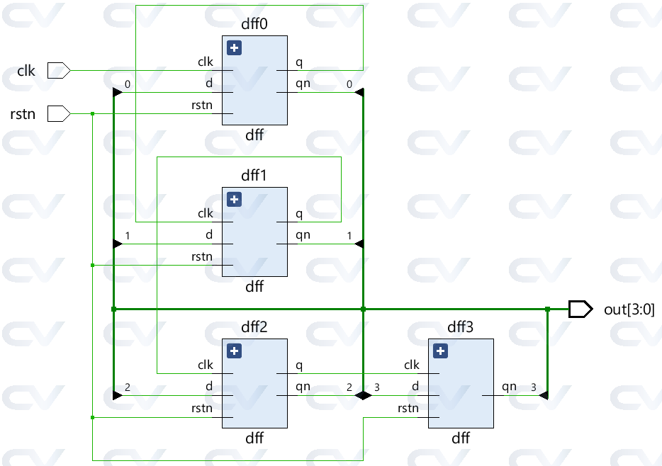 assign out = {qn3, qn2, qn1, qn0};