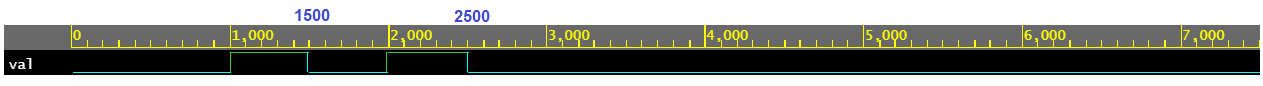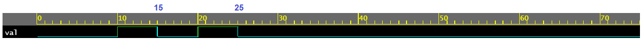 ncsim> run T=10 At time #1 T=15 At time #0.49 T=20 At time #0.50 T=25 At time #0.51 T=75 End of simulation ncsim: *W,RNQUIE: Simulation is complete.
